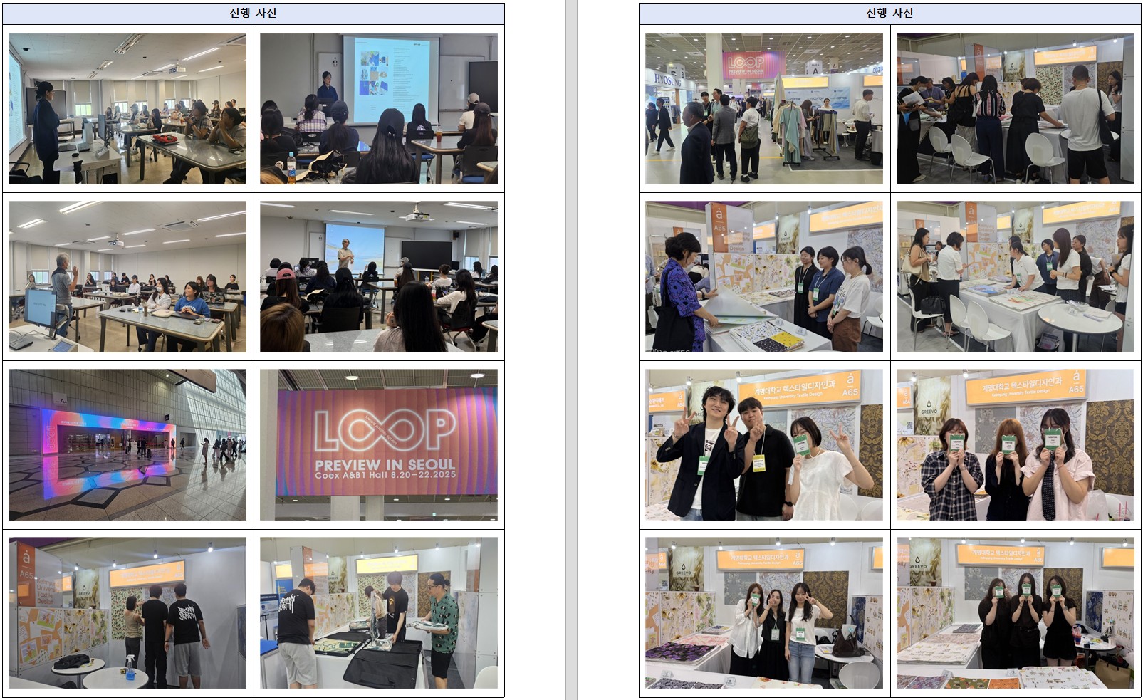 이번 프로그램을 통해, 전공 교육과정을 통해 개발된 640여 점의 뛰어난 텍스타일디자인 작품이 '서울 COEX'에서 개최된 ‘프리뷰 인 서울(PIS) 2025’에 참가하여 현장 학습의 기회를 제공하였습니다.